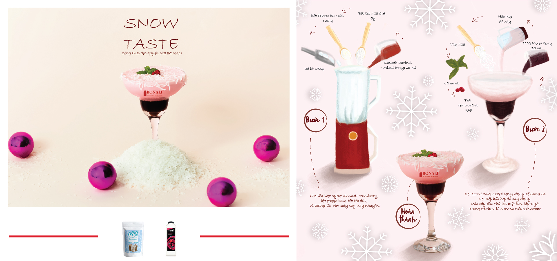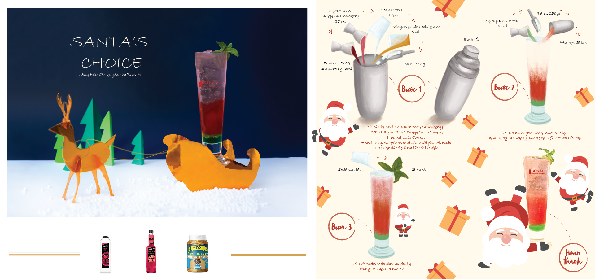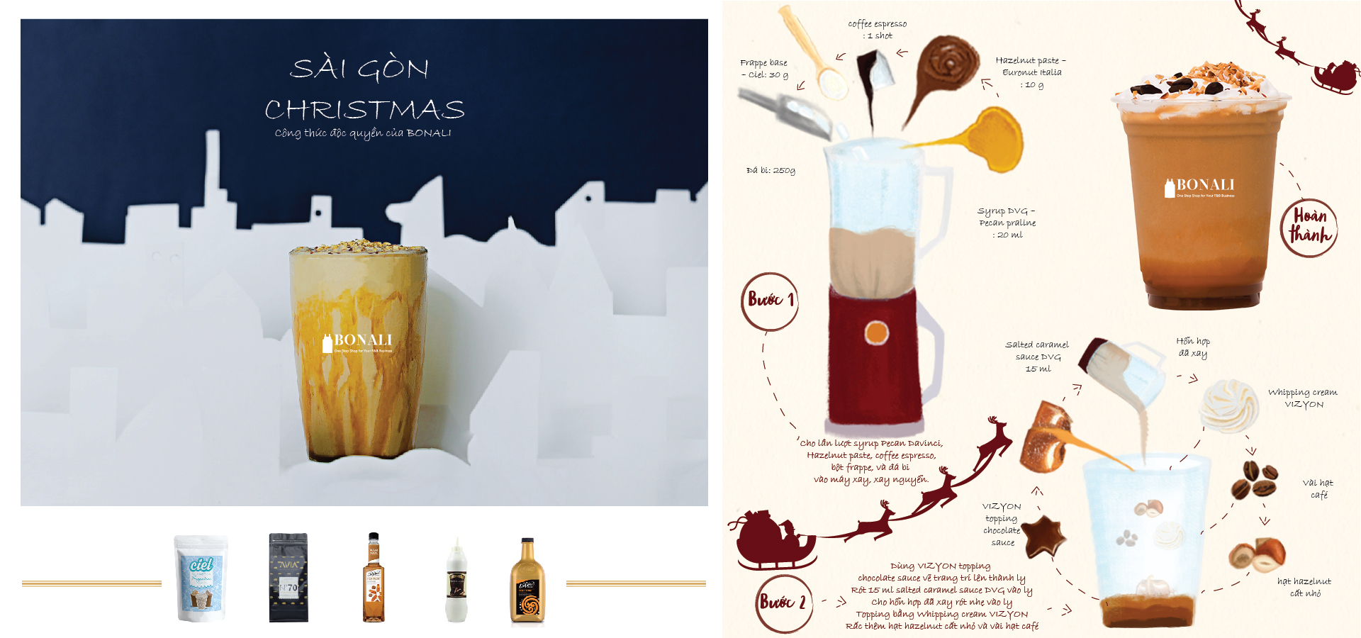 Bằng sự chân thành và đam mê trong lĩnh vực pha chế đồ uống, Bonali dành tặng cho bạn những công thức đồ uống đặc biệt trong mùa Noel, giúp bạn đem lại những món nước ngon miệng mà dễ làm đến cho quý khách hàng cũng như người thân trong gia đình.